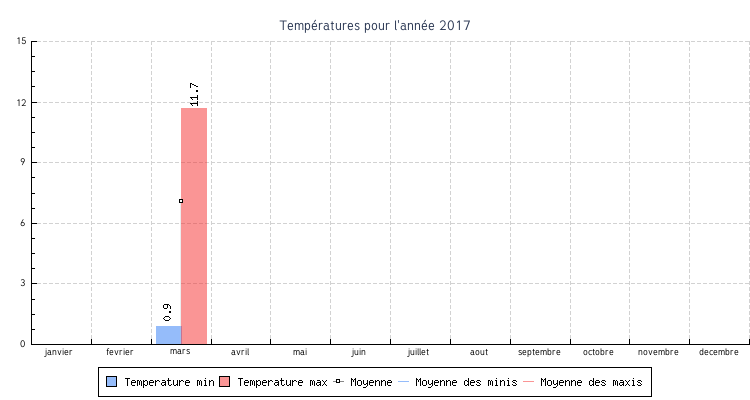 | mars | 0.9 °C | 0.9 °C | 11.7 °C | 11.7 °C | 7.1 °C | 4.1 km/h | 12.6 km/h | SSE |